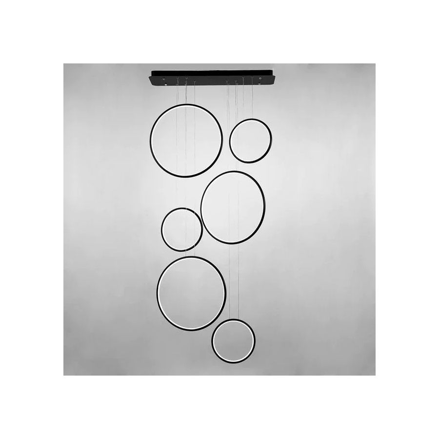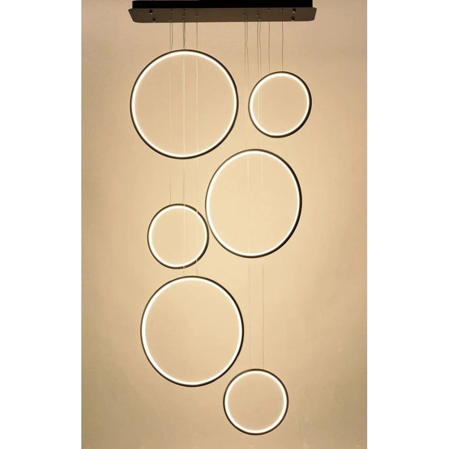Nowoczesna i designerska lampa wisząca LEDVISION to idealne rozwiązanie do nowoczesnych wnętrz. Składa się z sześciu świecących ringów, które zapewniają moc świetlną 130W i ciepłą barwę światła 3000K. Lampa wykonana jest w eleganckim kolorze czarnym, co dodaje jej unikalnego charakteru. Dzięki rozproszonemu światłu, lampa LEDVISION doskonale oświetli każde pomieszczenie, tworząc przytulną atmosferę. Dostępna z darmową dostawą w 24h na terenie Polski. Lampa świetnie sprawdzi się w pomieszczeniach z antresolą z uwagi na długie linki zasilające.